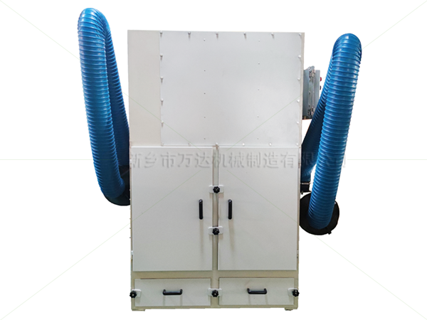 含塵氣體進入除塵器,灰斗后,由于氣流截面的突然擴大和氣流分布板的作用,氣流中的一些粗顆粒在動力和慣性力的作用作用下沉降在灰斗中。粒度細、密度低的粉塵顆粒進入粉塵過濾室后,通過布朗擴散和篩分的共同作用,粉塵沉積在濾料表面,凈化后的氣體進入潔凈空氣室,通過風機從排氣管排出。